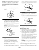 • Si le balai doit être nettoyé, restez à la position d'utilisation • Vérifiez que le robinet d'arrivée de carburant est fermé. et relâchez le levier de commande de déplacement gauche. Tout en engageant le balai, appuyez sur les poignées pour soulever l'avant de la machine de quelques centimètres (pouces). Soulevez ensuite les poignées rapidement pour cogner le sol avec l'avant de la machine. Répétez au besoin.