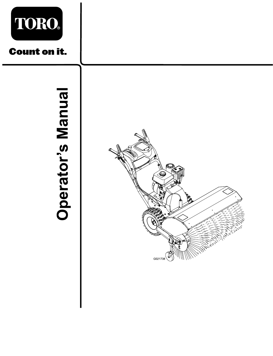 Form No. 3379-824 Rev A Walk-Behind Rotary Broom Model No. 23740—Serial No. 314000001 and Up Model No. 38700—Serial No. 314000001 and Up G021738 Register at www.Toro.com.