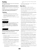 Safety – Replace gasoline caps securely and wipe up spilled fuel. Let engine and machine adjust to outdoor temperatures before starting to clear snow. Read and understand the contents of this manual before the engine is ever started. • This is the safety alert symbol. It is used to alert you to potential personal injury hazards. Obey all safety messages that follow this symbol to avoid possible injury or death. Operation • Never allow children to operate the machine.
