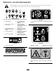 Säkerhets- och instruktionsdekaler Säkerhetsdekalerna och säkerhetsinstruktionerna är fullt synliga för föraren och finns nära alla potentiella farozoner. Dekaler som har skadats eller försvunnit ska bytas ut eller ersättas. Batterisymboler Vissa eller samtliga av dessa symboler finns på ditt batteri 1. Explosionsrisk 2. Ingen eld, öppna lågor eller rökning 3. Brännskaderisk p.g.a. frätande vätskor/kemiska ämnen 4. Använd ögonskydd. 5. Läs bruksanvisningen. 125-1621 6.