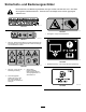 Sicherheits- und Bedienungsschilder Die Sicherheits- und Bedienungsaufkleber sind gut sichtbar; sie befinden sich in der Nähe der möglichen Gefahrenbereiche. Tauschen Sie beschädigte oder verloren gegangene Aufkleber aus. decal117-2718 117-2718 decal125-6171 125-6171 1. Stechgefahr: Tragen Sie Handschuhe. decal119-0217 119-0217 1. Warnung: Stellen Sie den Motor ab, berühren Sie keine sich bewegenden Teile und lassen Sie alle Schutzvorrichtungen und Schutzbleche montiert. decal125-6156 125-6156 1.