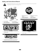 • Disengage the auxiliary hydraulics, lower the attachment, • Battery acid is poisonous and can cause burns. Avoid set the parking brake, shut off the engine, and remove the key. Wait for all movement to stop before adjusting, cleaning, or repairing. contact with skin, eyes, and clothing. Protect your face, eyes, and clothing when working with a battery. • Battery gases can explode. Keep cigarettes, sparks and • Carefully release pressure from components with stored flames away from the battery.