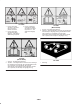107-2908 1. Fare for udslyngede genstande – hold andre personer på sikker afstand af maskinen. 2. Fare for udslyngede genstande fra plæneklipperen – hold deflektorafskærmningen på plads. 110-0629 (Model 30366) 3. Fare for at skære sig/ amputation af hænder eller fødder med plæneklipperens kniv – hold afstand til bevægelige dele. 1. Advarsel – læs betjeningsvejledningen. 2. Tippefare – sænk klippeenheden ved kørsel ned ad skråninger.