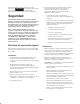 Seguridad para cortacéspedes Toro • Compruebe cuidadosamente que hay espacio suficiente antes de conducir por debajo de cualquier objeto en alto (por ejemplo, ramas, portales, cables eléctricos) y no entre en contacto con ellos. La siguiente lista contiene información específica para productos Toro u otra información sobre seguridad que usted debe saber que no está incluida en las normas CEN, ISO o ANSI. • No corte el césped en marcha atrás a menos que sea absolutamente necesario.
