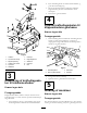 1 2 Montering af løftearmene på traktionsenheden Montering af løftearmene på klippeenheden Dele, der skal bruges til dette trin: Dele, der skal bruges til dette trin: 2 Drejetap 1 Løftearm, højre 2 Låseclips 1 Løftearm, venstre 4 Tryknylonskive 4 Gaffelbolt 1. På den ene side af traktionsenheden skal du løsne (ikke fjerne) hjulmøtrikkerne, der fastgør hjul- og dæksamlingen til de forreste hjultappe. 2 Låseclips 2 Klippehøjdekrave 2 Gaffelbolt 2.