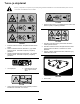 Turva- ja ohjetarrat Turva- ja ohjetarrat on sijoitettu hyvin näkyville paikoille mahdollisten vaara-alueiden lähettyville. Korvaa vioittuneet tai kadonneet tarrat uusilla. 117–4979 1. Takertumisvaara, hihna: pysy etäällä liikkuvista osista. Pidä kaikki suojukset ja suojalevyt paikoillaan. 107-2908 120-6604 1. Esineiden sinkoutumisvaara: pidä sivulliset turvallisen matkan päässä koneesta. 1. Esineiden sinkoutumisvaara. Älä päästä sivullisia laitteen lähelle. 2.
