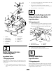 1 2 Montera lyftarmarna på traktorenheten Ansluta lyftarmarna till klippenheten Delar som behövs till detta steg: Delar som behövs till detta steg: 2 Svängtappsenhet 1 Lyftarm, höger 2 Saxpinne 1 Lyftarm, vänster 4 Tryckbricka i nylon 4 Sprintbult 1. Lossa (men ta inte bort) de hjulmuttrar som säkrar hjul- och däckanordningen mot framhjulstapparna på ena sidan av traktorenheten. 2 Hårnålssprint 2 Klipphöjdsring 2 Sprintbult 2. Hissa upp maskinen tills framhjulet lyfter från marken.