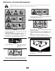 Säkerhets- och instruktionsdekaler Säkerhetsdekalerna och anvisningarna är fullt synliga för föraren och finns nära alla potentiella farozoner. Dekaler som har skadats eller ramlat bort ska bytas ut eller ersättas. 117–4979 1. Risk för att fastna i rem – håll avstånd till rörliga delar och se till att alla skydd sitter på plats. 107-2908 120-6604 1. Risk för utslungade föremål – håll kringstående på behörigt avstånd från maskinen. 2.