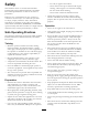 Toro Mower Safety • Do not operate the mower under the influence of alcohol or drugs. • Lightning can cause severe injury or death. If lightning is seen or thunder is heard in the area, do not operate the machine; seek shelter. • Use care when loading or unloading the machine into a trailer or truck. • Use care when approaching blind corners, shrubs, trees, or other objects that may obscure vision.