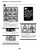 Säkerhets- och instruktionsdekaler Säkerhetsdekalerna och anvisningarna är fullt synliga för föraren och finns nära alla potentiella farozoner. Dekaler som har skadats eller ramlat bort ska bytas ut eller ersättas. 108-1986 120-6604 1. Klipphöjd 1. Risk för utslungade föremål – håll kringstående på behörigt avstånd från maskinen. 2. Risk för att händer slits av, gräsklipparkniv – håll avstånd till rörliga delar och se till att alla skydd sitter på plats. 3.