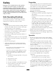 Preparation Safety • While operating, always wear substantial footwear and long trousers. Do not operate the equipment when barefoot or wearing open sandals. • Thoroughly inspect the area where the equipment is to be used and remove all objects which may be thrown by the machine. • Warning- Fuel is highly flammable. – Store fuel in containers specifically designed for this purpose. – Refuel outdoors only and do not smoke while refueling. – Add fuel before starting the engine.