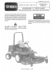 SAFETY AND INSTRUCTION DECALS The following decals are installed on the machine. If any become damaged or illegible, replace it. The decal part number is listed below and in your parts catalog. Replacements can be ordered from your Authorized Toto Distributor. DANG KEEP HANDS aod FEET AWAY | & CAUTION BLADE RETAINING BOLTS MUST BE TORQUED T0 85-110 ft-lbs. CHECK BLADE BOLT TORQUE AFTER STRIKING ANY SOLID ABJECT. a0 — On Front of Cutting Unit On gar! ot On Left Caster Arm {(Part No. nutting Uni (Part No.