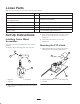 5. Route new belt around spindle pulleys and thru idler pulley assembly, as shown in figure 23. 5 6 1 6 Figure 23 3 4 6. Reposition gear box plate on deck channels while routing belt around gear box pulley. Mount gear box plate to deck channels with capscrews and nuts previously removed. 2 7. Reinstall idler arm bracket to idler arm with cotter pin and clevis pin. Hook spring onto idler arm bracket.
