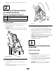 3. Sørg for, at styrehjulets dæk er pumpet op til 2,41 til 3,45 bar. 2 Montering af blæsemaskinen på traktionsenheden Dele, der skal bruges til dette trin: 1 Blæsemaskine 1 Låsepind 1 Låseclips 1 G006618 Figur 5 Fremgangsmåde 1. Låsepind 1. Fjern eventuelle redskaber fra bagenden af maskinen. 2. Bak traktionsenheden, så den placeres bag redskabsadapteren. 6. Før slangerne gennem slangestøttens løkke.