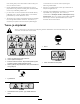 Määritä koneessa tarvittavat etupainot seuraavien painotaulukoiden avulla. 2 3 1 G00381 1 Kuva 6 1. 1,5–2,0 mm 2. Vastamutteri 3. Säätömutteri 4 Puhaltimen rasvaus Mitään osia ei tarvita Ohjeet Lehtipuhallin on voideltava ennen käyttöä. Lisätietoja on voitelua käsittelevässä osassa. Laitteen voitelun laiminlyönti saattaa vioittaa tärkeitä osia. 5 Etupainon asennus Mitään osia ei tarvita Ohjeet VAROITUS Kun koneeseen ei ole asennettu lisälaitetta, irtopainot on poistettava.
