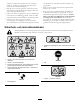 • • • tränger in i huden måste opereras bort inom några få timmar av en läkare som är bekant med denna typ av skador, annars kan kallbrand uppstå. Sänk allt tryck i systemet genom att stanna motorn och sänka blåsaren till marken innan du kopplar ur eller utför något arbete på hydraulsystemet. Om motorn måste vara igång för att ett visst underhåll ska kunna utföras, ska klädesplagg, händer, fötter och andra kroppsdelar hållas borta från fläkten och alla rörliga delar.