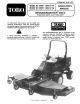 SPECIFICATIONS GENERAL SPECIFICATIONS (approx.): Q Overall Length: With deck installed 134in. Overall Width: Transport 75in Mowing 127in. Height: 58 in. With TOPS installed 82in. Wheel Tread: {Front} 52in, (Rear) 44in, Wheel Tread: 56in. Dry Weight: 2 Wheel Drive 3,450 bs. 4 Wheel Drive 3.550 tbs. OPTIONAL EQUIPMENT Roll Over Protection Kit. Contact Your Local Toto Distributor {Standard on Model 30455} Canopy Kit, Contact Your Local Torah Distributor Spark Arrest or Muffler, Part No.