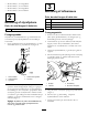 Opsætning Løsdele Brug skemaet herunder til at kontrollere, at alle dele er blevet leveret. Beskrivelse Fremgangsmåde 1 2 3 4 5 6 Antal Anvendelse Færdiggørelsessæt (sælges separat) 1 Monter et færdiggørelsessæt. Styrehjul 2 Monter styrehjulene. Løftearm, højre Løftearm, venstre Drejetap Låseclips Trykskive Gaffelbolt Låseclips Klippehøjdekrave Gaffelbolt Låseclips Bolt (1/2 x 3/4 tomme) Skive 1 1 2 2 4 4 2 2 2 2 2 2 Kræver ingen dele – Forbind kraftudtagsakslen til klippeenhedens gearkasse.