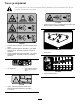 Turva- ja ohjetarrat Turva- ja ohjetarrat on sijoitettu hyvin näkyville paikoille mahdollisten vaara-alueiden lähettyville. Korvaa vioittuneet tai kadonneet tarrat uusilla. 117–4979 1. Takertumisvaara, hihna: pysy etäällä liikkuvista osista. Pidä kaikki suojukset ja suojalevyt paikoillaan. 120-6604 1. Esineiden sinkoutumisvaara. Älä päästä sivullisia laitteen lähelle. 2. Käsien loukkaantumisvaara, leikkuuterä – pysy etäällä liikkuvista osista. Pidä kaikki suojukset ja suojalevyt paikoillaan. 108-1988 1.