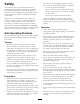 Safety • Use extra care when handling gasoline and other fuels. They are flammable and vapors are explosive. This machine meets or exceeds CEN standard EN 836:1997, ISO standard 5395:1990, and ANSI B71.4-2004 specifications in effect at the time of production, when equipped with proper ballast. Refer to the traction unit operators manual for the ballast requirements. – Use only an approved container. – Never remove fuel cap or add fuel with engine running. Allow engine to cool before refueling.