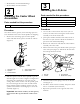 • Model 30303, 72 inch Rear Discharge • Model 30304, 72 inch Guardian 3 2 Installing the Lift Arms Parts needed for this procedure: Installing the Castor Wheel Assemblies Parts needed for this procedure: 2 1 Lift arm, right 1 Lift arm, left 2 Pivot pin assembly 2 Cotter pin Castor wheel assembly Procedure Procedure 1. On one side of the traction unit, loosen (do not remove) the wheel nuts securing the wheel and tire assembly to the front wheel studs.