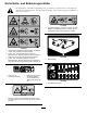 Sicherheits- und Bedienungsschilder Die Sicherheits- und Bedienungsschilder sind gut sichtbar; sie befinden sich in der Nähe der möglichen Gefahrenbereiche. Tauschen Sie beschädigte oder verloren gegangene Schilder aus oder ersetzen Sie sie. 117–4979 1. Verhedderungsgefahr am Riemen: Halten Sie einen Abstand zu beweglichen Teilen und lassen Sie alle Schutzvorrichtungen und Schutzbleche montiert. 120-6604 1. Gefahr durch herausgeschleuderte Objekte: Unbeteiligte müssen einen Abstand zur Maschine halten. 2.