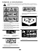 decal108-1986 108-1986 1. Maaihoogte decal115-4505 115-4505 1. Waarschuwing – Lees de Gebruikershandleiding. 2. Machine kan kantelen – Laat de maai-eenheid neer als u een helling afrijdt. Voeg bij tweewielaangedreven machines een achtergewicht van 16 kg toe op de GM 3280D en een achtergewicht van 32 kg toe op de GM 3320. Voor 3280 D-eenheden met vierwielaandrijving moet u een achtergewicht van 16 kg toevoegen.