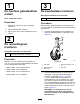 1 3 De machine gebruiksklaar maken De zwenkwielen monteren Benodigde onderdelen voor deze stap: 2 Geen onderdelen vereist Procedure 1. Parkeer de machine op een horizontaal oppervlak. 2. Stel de parkeerrem in werking. 3. Zet de motor af en haal het sleuteltje uit het contact. Zwenkwielconstructie Procedure De drukringen, afstandsstukken en klemkapjes zijn voor het transport al op de assen van de zwenkwielen gemonteerd. 1.
