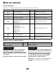 Entretien Remarque: Les côtés gauche et droit de la machine sont déterminés d'après la position d'utilisation normale. Programme d'entretien recommandé Périodicité d'entretien Procédure d'entretien Après les 2 premières heures de fonctionnement • Serrez les écrous des roues pivotantes. Après les 10 premières heures de fonctionnement • Serrez les écrous des roues pivotantes. • Serrez les boulons de lame. À chaque utilisation ou une fois par jour • • • • Graissez les bagues des bras pivotants.
