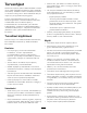 Sisältö Johdanto Johdanto ...................................................................... 2 Turvaohjeet.................................................................. 3 Turvalliset käyttötavat........................................... 3 Toro-leikkurin turvallisuus.................................... 4 Turva- ja ohjetarrat............................................... 6 Käyttöönotto .............................................................. 8 1 Täydennyssarjan asennus .......................