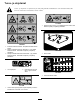 Turva- ja ohjetarrat Turva- ja ohjetarrat on sijoitettu hyvin näkyville paikoille mahdollisten vaara-alueiden lähettyville. Korvaa vioittuneet tai kadonneet tarrat uusilla. 117–4979 1. Takertumisvaara, hihna: pysy etäällä liikkuvista osista. Pidä kaikki suojukset ja suojalevyt paikoillaan. 120-6604 1. Esineiden sinkoutumisvaara. Älä päästä sivullisia laitteen lähelle. 2. Käsien loukkaantumisvaara, leikkuuterä – pysy etäällä liikkuvista osista. Pidä kaikki suojukset ja suojalevyt paikoillaan. 108-1988 1.