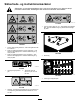 Sikkerheds- og instruktionsmærkater Sikkerheds- og instruktionsmærkaterne kan nemt ses af operatøren og er placeret tæt på potentielle risikoområder. Beskadigede eller bortkomne mærkater skal udskiftes. decal117-4979 117–4979 1. Fare for at blive viklet ind, rem – hold afstand til bevægelige dele. Hold alle afskærmninger og sikkerhedsanordninger på plads. decal120-6604 120-6604 1. Fare for udslyngede genstande – hold omkringstående væk fra maskinen. 2.