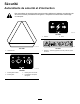 decal144-3512 144-3512 1. 2. 3. 4. decal130-5361 130-5361 1. Attention – lisez le Manuel de l'utilisateur; utilisez la machine uniquement depuis le siège du conducteur; attachez la ceinture de sécurité; portez des protecteurs d'oreilles. decal133-8061 133-8061 15A 10A 25A 10A 10A 15A 144-3324 decal144-3324 144-3324 1. Lisez le Manuel de l'utilisateur pour tout renseignement sur les fusibles. 2. Ventilateur – 25 A 3. Feux de travail – 10 A 5. Puissance – 10 A 6.