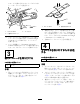 5 ブロアの取り付けブラケットを取り 付ける この作業に必要なパーツ 図7 1. デフレクタ 3. 補強プレート 2. ピボットブラケット 4. スティフナプレート 4. 1 ブロアアセンブリと取り付けブラケット 3 キャップスクリュ, 5/16 x 1 インチ 4 ロックナット, 5/16 4 キャリッジボルト, 3/8 x 3/4 インチ 3 フランジナット, 3/8 インチ 手順 右側デッキカバーのスプリングラッチを刈り 込みデッキの右側に固定しているねじ類を外 す図 9。ラッチは右側カバーと共に保管する。 2.