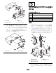 4. ねじ山付きロッドをスプリングブラケットの 大きい方の穴に入れ、もう1個のフランジナッ ト5/16-18 インチで仮止めする図 20。フランジ ナットはまだ本締めしない。 5. ねじ山付きロッドのもう一方の端部をブリッ ジバーの穴に入れ、ボルト2本とロックナッ トでスプリングブラケットをブリッジバーに 固定する 図 20 。 6. スプリングの短い方の端をねじ山付きロッド の穴に引っ掛け、長い方の端をアイドラアー ムの穴に引っ掛ける図 20。 7. アイドラプーリのアームを、以下の部品と共 にその順序でデッキに取り付けるピボットね じ 3/8-16 インチ、スラストワッシャ 1/2 イン チ、アイドラアーム、スラストワッシャ 3/8 イ ンチ、デッキ、ロックナット 3/8-16 インチ 図 20。この時点では、ねじ山付きロッドのフラ ンジナットを締め付けない。ブロアアセンブ リとベルトの取り付けが終わった後にスプリ ングのテンション調整を行う。 図 18 1. 6-13/16 インチ 2. 2. 9-1/8 インチ 図 19 に示す寸法に従って、右ブリッジバーに 直径 20.