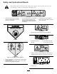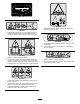 99–5172 107-2915 1. 100-6578 1. Entanglement hazard, shaft—tykeep bystanders a safe distance from the machine. Entanglement hazard, belt—do not operate the machine with the shields or guards removed; always keep the shields and guards in place; stay away from moving parts. 107-2926 1. 2. Cutting/dismemberment hazard, impeller—stay away from moving parts. Thrown object hazard—keep bystanders a safe distance from the machine. 105–9553 1. 2. 93–7301 Warning—read the Operator’s Manual.