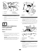 Huomaa: Lukkomutterit on suunnattava toisiaan kohti. Kiristä lukkomuttereita, kunnes ne ovat tasassa suuntaimen saranoita vasten. 7. Vapauta kiristinpyörän säätömutteri. 8. Asenna kansi. 8. Nosta suuntainta ja tarkista jousen jännitys päästämällä suuntain putoamaan. Voimanulosoton käyttöhihnan vaihto Huomaa: Jousen jännityksen on oltava riittävä pitämään suuntain tukevasti ala-asennossa. Säädä tarvittaessa. Säädettävän hihnapyörän avulla kiristettävä terän käyttöhihna on erittäin kestävä.