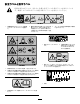 99–5172 107-2915 1. シャフトに巻き込まれる危険: 周囲の人を十分に遠ざけること。 117–4979 1. ベルトに巻き込まれる危険: 可動部に近づかないこと。すべ てのガード類を正しく取り付けて使用すること。 107-2926 1. インペラによる切傷や手足の切断の危険: 可動部に近づ かないこと。 2. 異物が飛び出す危険:人を近づけないこと。 105–9553 1. 警告: オペレーターズマニュアル を読むこと。 2. 転倒の危険: 下り斜面ではカッティングユニットを降ろして走 行すること。2 輪駆動ユニットには、25 kg のリアウェイトを搭載 すること(GM 228D);または、48 kg のリアウェイトを搭載するこ と(GM 225)。4 輪駆動ユニットにはウェイトを搭載しないこと。 93–7301 107-2908 1. 異物が飛び出す危険:人を近づけないこと。 2. 飛来物危険:デフレクタを上位置にセットして、あるいは取り付 けないで運転しないこと; 必ず正しく取り付けて運転すること。 3.