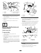 • Græsdeflektoren skal altid være monteret og stå i nederste position på klippeenheden med sideudkast. Brug aldrig klippeenheden uden deflektoren eller hele græssamleren. • Hvis klippeenhedens udblæsningsområde bliver tilstoppet, skal du slukke motoren, før tilstopningen fjernes. • Vær forsigtig ved klipning af græsskråninger. Undgå pludselig start eller opbremsning samt bratte vendinger.
