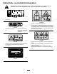 Sikkerheds- og instruktionsmærkater Sikkerheds- og instruktionsmærkaterne kan nemt ses af operatøren og er placeret tæt på potentielle risikoområder. Beskadigede eller bortkomne mærkater skal udskiftes. decal92-3035 92-3035 1. Klippehøjde decal105-9553 105-9553 1. Advarsel – læs betjeningsvejledningen. 2. Fare for væltning – sænk klippeenheden, når du kører ned ad skråninger. For enheder med 2-hjulstræk skal du tilføje en bagvægt på 25 kg til GM 228D-enheder og en bagvægt på 48 kg til GM 225-enheder.