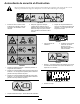 107-2908 1. Risque de projection d'objets – tenez les spectateurs à bonne distance de la machine. 2. Risque de projections – n'utilisez pas la tondeuse avec le déflecteur relevé ou sans le déflecteur ; laissez-le toujours en place. 99–5172 3. Risque de coupure/mutilation des mains ou des pieds par la lame de la tondeuse – ne vous approchez pas des pièces mobiles. 117–4979 1.