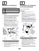 2 3 Montieren der Hubarme Anschließen der Hubarme an die Schneideinheit Für diesen Arbeitsschritt erforderliche Teile: 1 Rechter Hubarm 1 Linker Hubarm 2 Lagerbolzen 2 Splint (5/32 x 1¾ Zoll) Keine Teile werden benötigt Verfahren Verfahren 1. Lösen Sie an einer Seite der Zugmaschine die Radmuttern, mit denen das Rad und der Reifen an den vorderen Radbolzen befestigt sind (nehmen Sie die Radmuttern nicht ab). 2. Bocken Sie die Maschine auf, dass das Vorderrad nicht mehr auf dem Boden ist.