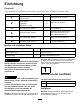 Einrichtung Einzelteile Prüfen Sie anhand der nachstehenden Tabelle, dass Sie alle im Lieferumfang enthaltenen Teile erhalten haben. Beschreibung Verfahren Menge Verwendung Vorderes Laufrad Hinteres Laufrad Rechter Hubarm Linker Hubarm Lagerbolzen Splint (5/32 x 1¾ Zoll) 2 2 1 1 2 2 3 Keine Teile werden benötigt – Schließen Sie die Hubarme an die Schneideinheit an. 4 Keine Teile werden benötigt – Schließen Sie die Zapfwelle und die Schutzvorrichtung an das Schneideinheitgetriebe an.