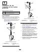Montaje Piezas sueltas Utilice la tabla siguiente para verificar que no falta ninguna pieza. Procedimiento Descripción Uso Cant. Conjunto de rueda giratoria delantera Conjunto de rueda giratoria trasera Brazo de elevación derecho Brazo de elevación izquierdo Bulón Pasador (5/32 x 1¾".) 2 2 1 1 2 2 Instale los conjuntos de las ruedas giratorias. 3 No se necesitan piezas – Conecte los brazos de elevación a la unidad de corte.