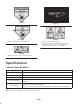 54-9220 99-5172 99-8401 100-6582 1. Warning—read the Operator’s Manual. 2. Tipping hazard—lower the cutting unit when driving down slopes. For 2 wheel drive units, add a 41 kg (90 lb.) rear weight. For 4 wheel drive units, do not add weight. 1. Warning—cutting hazard to hands and fingers. 93-6696 1. Stored energy hazard—read the Operator’s Manual. Specifications General Specifications Width of Cut 71-5/8 in. (1.82 m) Height of Cut Adjustable from 1 to 4 in.