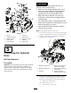 2 4 • 2 lift-arm pivots, front (Figure 17). 3 1 8 10 9 7 g017954 5 Figure 17 g017956 6 Figure 19 • 2 lift-arm pivots, rear (Figure 18). 1. Lift-arm latches 6. Lift-arm pads 2. Hairpin cotter 7. Clevis pin 3. Clevis pin 8. Hairpin cotter 4. Height-of-cut collar 5. Height-of-cut rod 9. Right lift arm 10. Right caster arm 3. Pivot the deck until the clevis pin will fit through the hole in the right castor arm and secure it to the right lift arm.