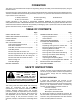 )25(:25' 7KH FXWWLQJ XQLWV KDYH DGYDQFHG FRQFHSWV LQ HQJLQHHULQJ GHVLJQ DQG VDIHW\ DQG LI PDLQWDLQHG SURSHUO\ ZLOO JLYH H[FHOOHQW VHUYLFH 6LQFH WKH\ DUH KLJK TXDOLW\ SURGXFWV 7RUR LV FRQFHUQHG DERXW WKH IXWXUH XVH RI WKH PDFKLQHV DQG VDIHW\ RI WKH XVHU 7KHUHIRUH UHDG WKLV PDQXDO WR IDPLOLDUL]H \RXUVHOI ZLWK SURSHU VHW XS RSHUDWLRQ DQG PDLQWHQDQFH LQVWUXFWLRQV 7KH PDMRU VHFWLRQV RI WKH PDQXDO DUH 6DIHW\ ,QVWUXFWLRQV 6HW XS ,QVWUXFWLRQV %HIRUH 2SHUDWLQJ /XEULFDWLRQ 0DLQWHQDQFH