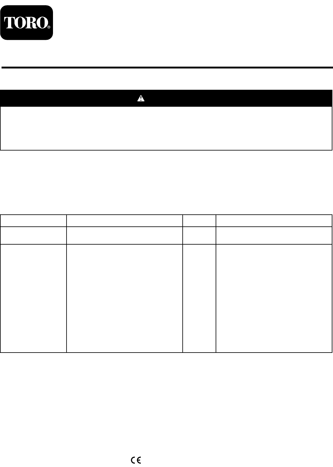 Form No. 3395-756 Rev B Système d'attache rapide arrière Tondeuse Groundsmaster® 7200 Series à partir de 2013 N° de modèle 30810—N° de série 315000001 et suivants N° de modèle 30812—N° de série 315000001 et suivants Instructions de montage Remarque: La machine doit être équipée du kit unité d'alimentation auxiliaire, réf. Toro 30382.