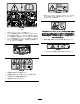 4-1086 モデル 30849 および 30843 のみ 1. 刈高 106-6753 1. 異物が飛び出す危険:人を近づけないこと。 2. ブレードによる手足切断の危険:可動部に近づかないこと 104-5181 (CE用) 1. 警告: オペレーターズマニュアル を読むこと。 2. 転倒の危険:15°以上の斜面では運転禁止。転倒保護バー 装着車ではシートベルト着用すること。 3. 異物が飛び出す危険:人を近づけないこと。 4. 手足や指の切断の危険: 可動部に近づかないこと。 5. 警告: 車両を離れるときは駐車ブレーキをロックし、エンジ ンを停止し、キーを抜くこと。 104-0484 106-6754 10 1. 警告: 表面が熱い。触れないこと。 2.