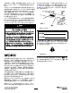 g012630 図8 g012628 1. 3. フードラッチブラケット 2. フードのラッチ 1. 図6 リベット フードロックブラケットのもう一方のアームにボ ルトを取り付けてラッチを固定する図 9。ボルト はしっかりと固定するがナットの締め付けは行 わないこと。 7. CE 用ロックブラケットとフードラッチブラケットの 取り付け穴をそろえて、フードの上に位置決めす る。ロックブラケットをフードに当てて取り付ける 図 7。ロックブラケットアームからボルトナットアセ ンブリを外してしまわないこと。 g012631 図9 1. ボルト 2. ナット 3. フードロックブラケットの アーム g012629 図7 1. CE 用ロックブラケット 2. ボルトナットアセンブリ 4. フードの内側にある穴に、ワッシャを整列させる。 5. ブラケットとワッシャをフードにリベットで固定す る図 7。 6.